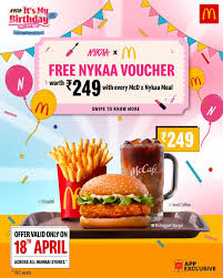 But the brilliance didn't stop at the shoreline; Nykaa decided to take "Girl Math" to a whole new level with an unexpected and delicious collaboration with McDonald’s that essentially made our beauty dreams come true for the price of a burger. For the 14th birthday special on April 18th, they introduced the Nykaa x McDonald’s Meal a McChicken or McVeggie combo with iced coffee for ₹249 which came with a ₹249 Nykaa voucher, effectively making the meal free in the world of beauty logic. This collab was a masterstroke in cross-platform marketing, bridging the gap between our midday cravings and our late-night "add to cart" sessions while driving massive footfall into McDonald’s stores across Mumbai. It was a celebration that felt like it was designed by a best friend who knows exactly what you want: a good meal, a great discount, and a new lipstick to celebrate the occasion.